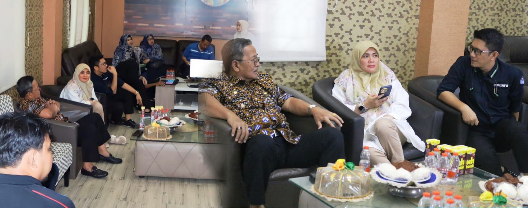 Wabup Maros bersama rombongan diterima langusng Wakil Bupati Pinrang dan Kepala Dinas Kominfosandi Kabupaten pinrang beserta jajarannya di di Lounge Jendela Lasinrang Dinas Kominfosandi, Jum’at (14/07/2023).