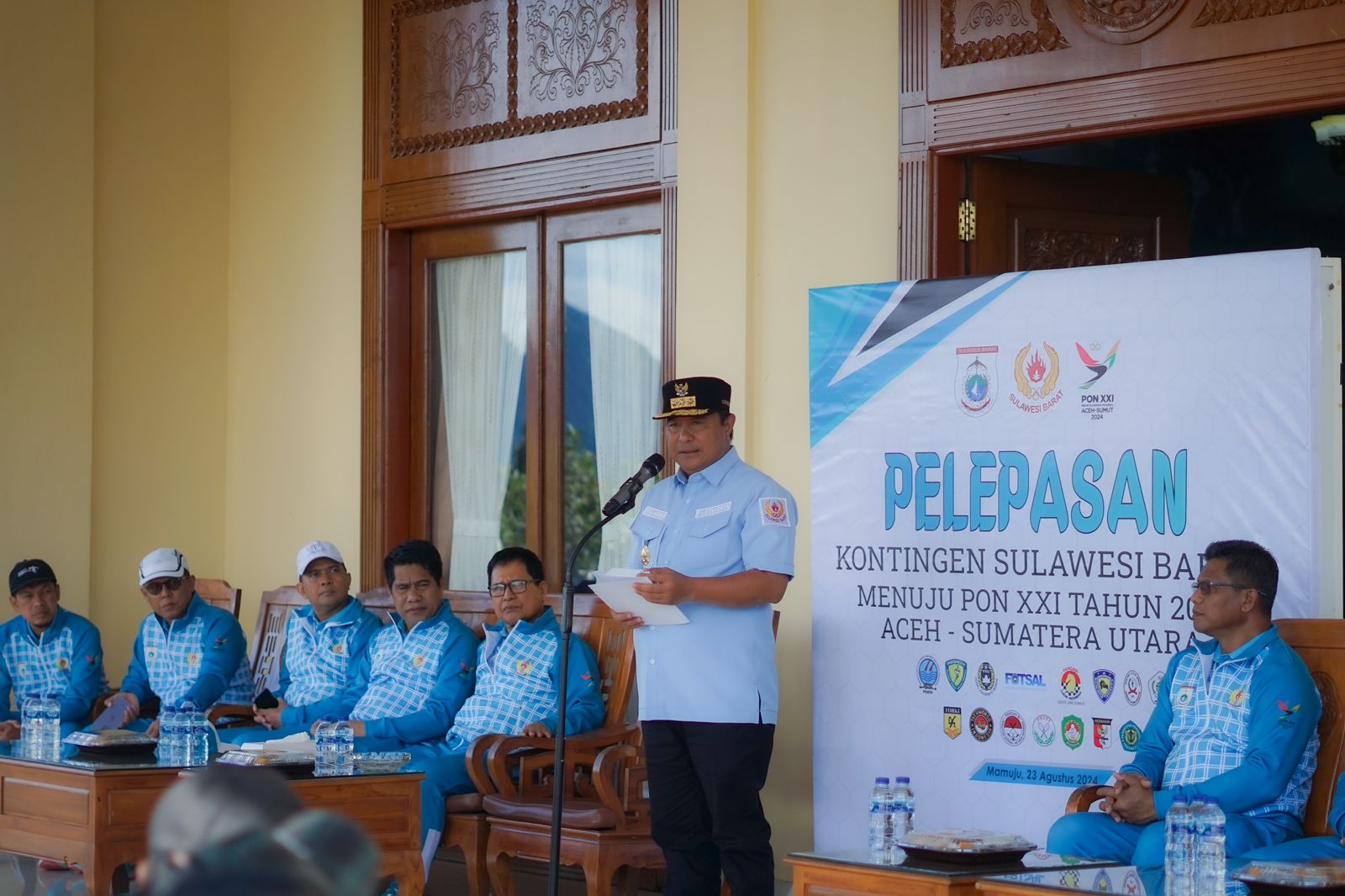 “Jadi, atas nama masyarakat dan Pemprov Sulbar mengucapkan terimakasih kepada secara khusus pengurus KONI Sulbar, Dispora Sulbar dan seluruh pihak yang berpartisipasi dalam mendukung kontingen kita. Dan saya mendoakan, saya minta kita semua mendoakan mudah-mudahan wakil kita, kontingen kita membawa nama baik Sulbar di PON Aceh dan Sumut. Kita mendoakan kembali dengan selamat,” tuturnya.