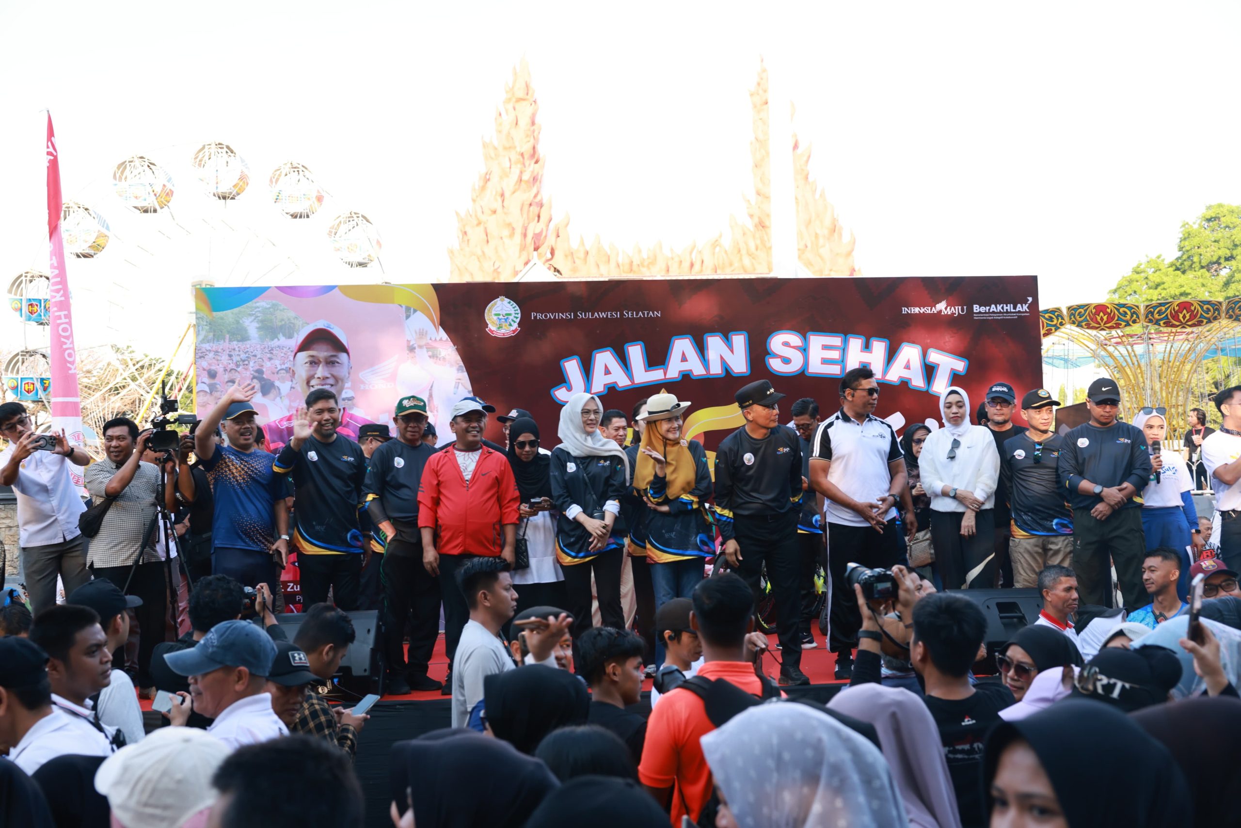 Jalan Sehat dimulai pukul 6.00 WITA, ketika Pj Gubernur Sulsel, Zudan Arif Fakrulloh, secara resmi melepas peserta di depan Monumen Mandala, Jalan Jenderal Sudirman, Minggu (13/10/2024) pagi.
