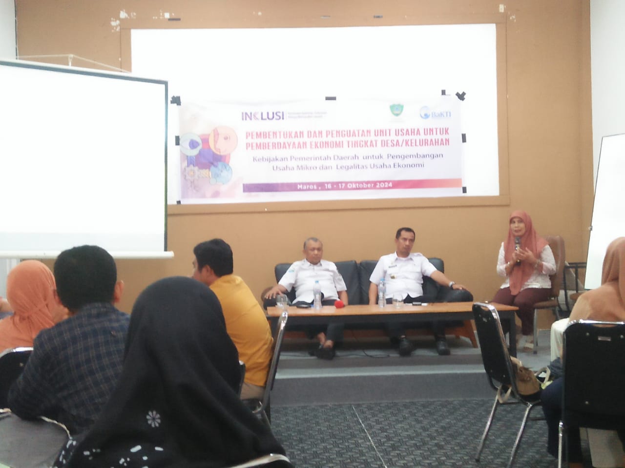 Sementara itu, Isma sebagai koordinator program INKLUSI di Kabupaten Maros menyampaikan tujuan adanya Kegiatan ini untuk meningkatkan pengetahuan, pemahaman dan pengembangan tentang pengelolaan keuangan usaha ekonomi mikro dan bagaimana kebijakan pemerintah daerah untuk mendapatkan legalitas bagi pelaku usaha di Kabupaten Maros yang merupakan wilayah dampingan Program INKLUSI” jelasnya.