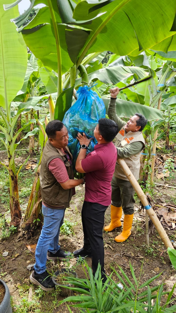 ikonkata.id, Mamuju – PJ Gubernur Sulbar Bahtiar Baharuddin memanen hasil perkebunan Pisang Cavendish di lahan hortikultura kompleks Kantor Gubernur Sulbar, Jumat 31 Januari 2025.