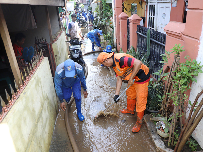 “Kita targetkan penanganan sampah dan lumpur sisa genangan dapat tuntas hari ini kalau semua lokasi sudah surut” terangnya.
