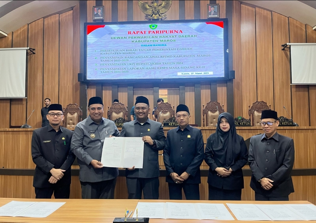 ikonkata.id, Maros – DPRD Maros menggelar rapat paripurna bersama Pemerintah Kabupaten Maros di ruang rapat utama, Kamis, 27 Maret 2025. Rapat ini dipimpin Ketua DPRD Maros, Muh Gemilang Pagessa, didampingi Wakil Ketua Abdul Rasyid dan Nurwahyuni Malik, serta dihadiri Bupati Maros, Chaidir Syam.