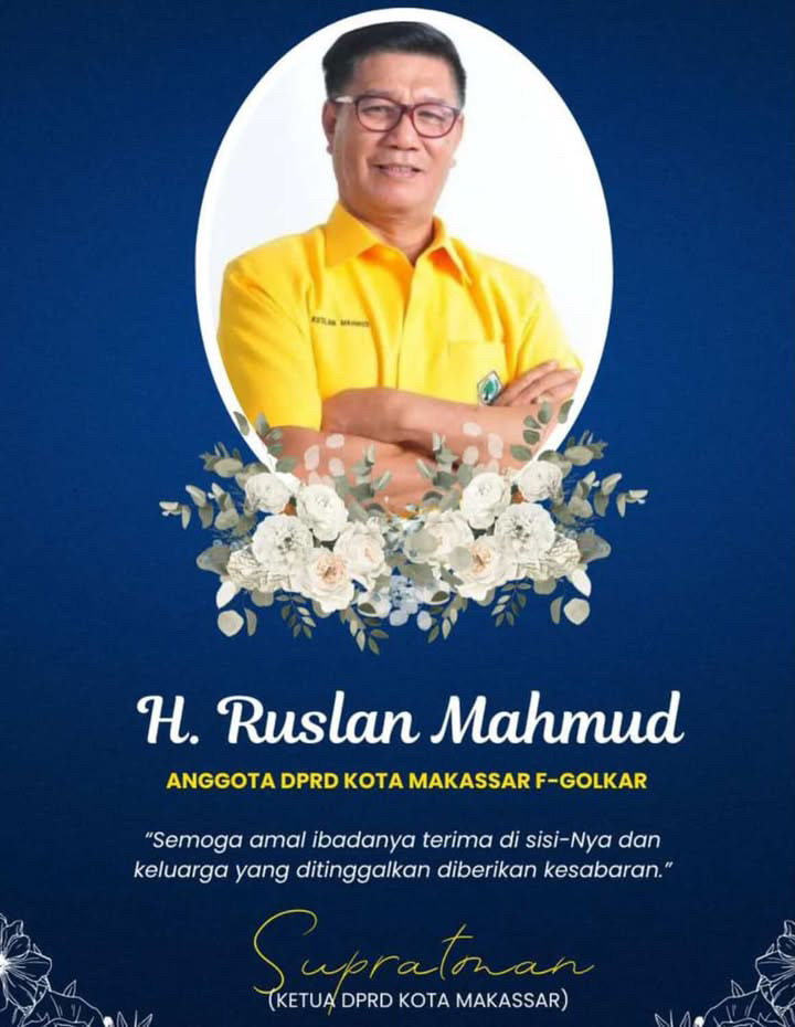 IkonkataID,MAKASSAR– Gedung DPRD Makassar berduka setelah seorang anggota  DPRD Ruslan Mahmud meninggal dunia, Sabtu 19 April 2025. Almarhum Ruslan Mahmud merupakan anggota DPRD dari Fraksi Golkar Makassar.