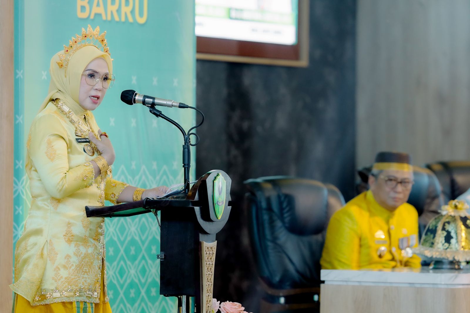 Bupati Barru Andi Ina yang mengenakan busana adat khas bugis tampak anggun saat menyampaikan  sambutannya. Dengan lugas, mantan ketua DPRD Sulsel tersebut mengurai secara filosofis peringatan hari jadi Barru yang lebih bermakna Muhasabah untuk merefleksikan masa lalu sebagai sebuah mata rantai sejarah yang sangat bernilai serta dijadikan referensi dalam menapaki masa kini dan masa yang akan datang.