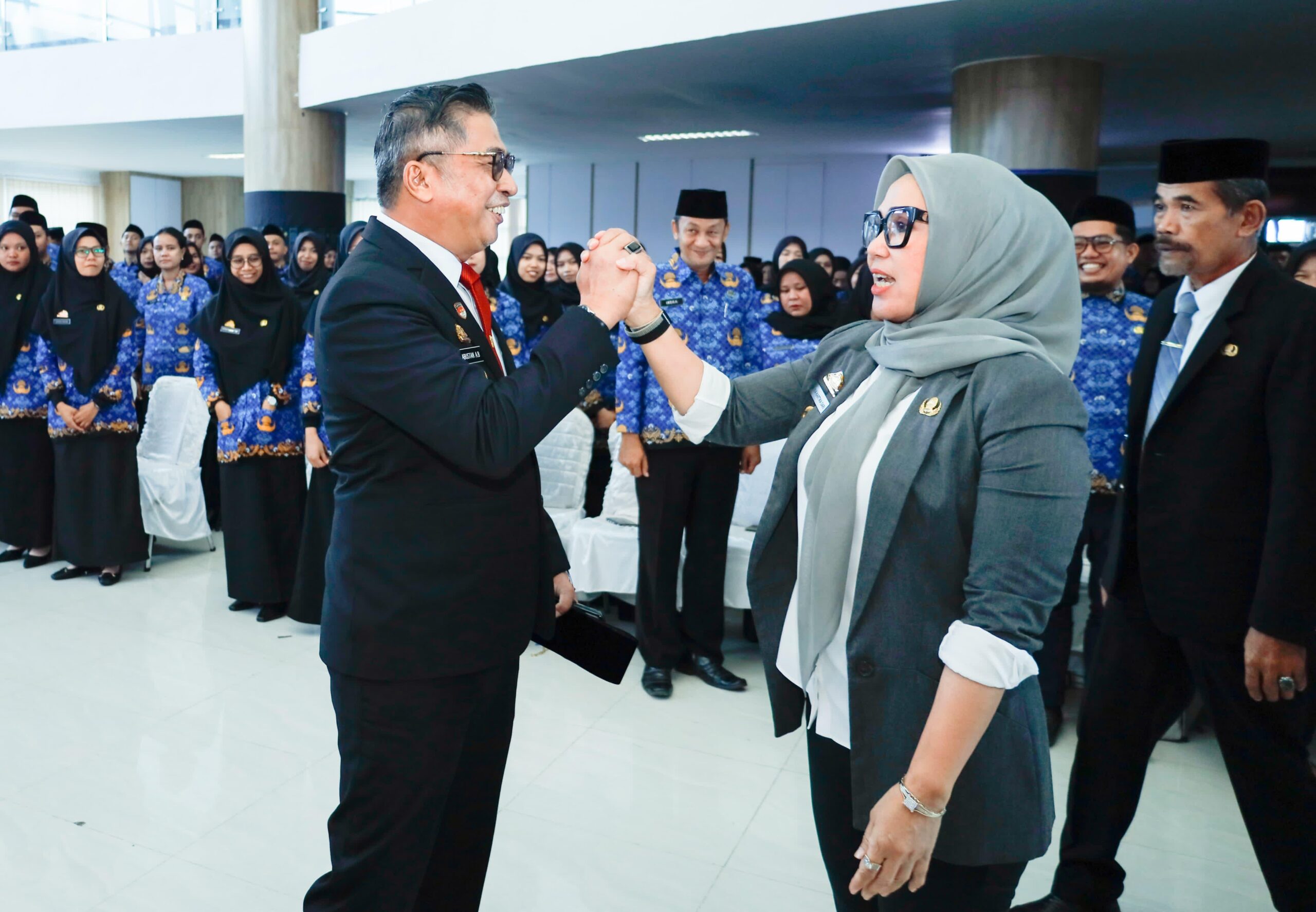 ikonkataID,BARRU-Pemerintah Kabupaten Barru menyerahkan SK pengangkatan kepada 152 CPNS dan 225 PPPK, sekaligus melantik 13 Pejabat Fungsional, di Baruga Pettu Adae, Lantai VI MPP Kantor Bupati Barru, Kamis 12 Juni 2025.