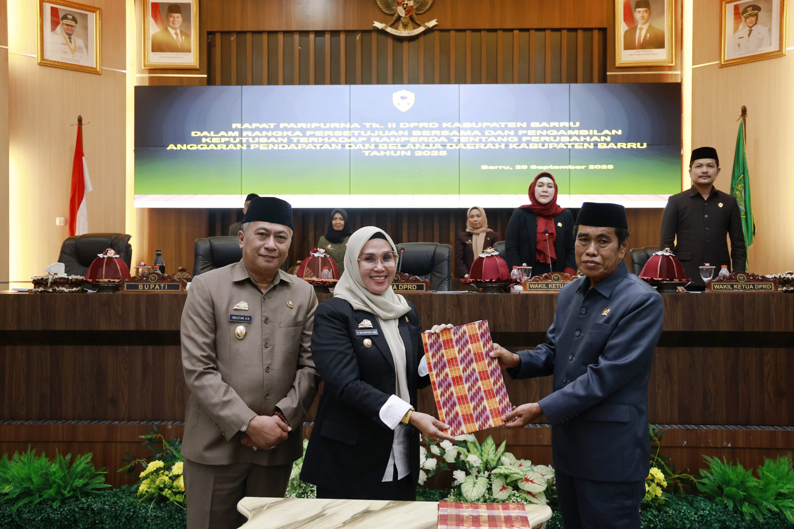 Penandatangan keputusan bersama terhadap APBD-P tersebut dilakukan Bupati Barru A. Ina Kartika Sari, SH. M. Si bersama Ketua DPRD Barru Drs. H. Syamsuddin Muhiddin. M. Si diruang Sidang DPRD Barru, Senin 29/9/2025.