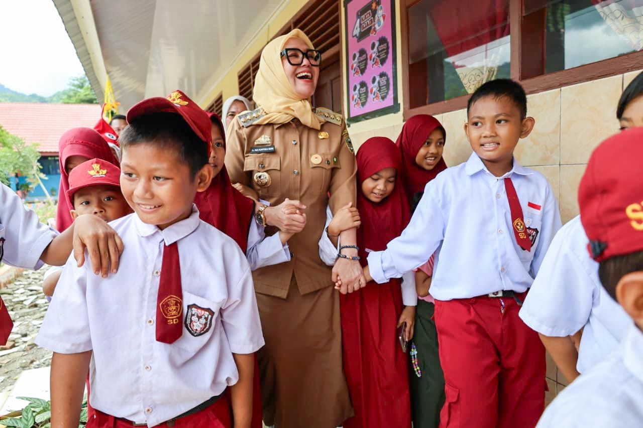 Usai sambutan, Bupati Andi Ina langsung meninjau Toilet Sekolah SDN 131 Manuba dalam rangka memastikan fasilitas sanitasi sekolah berada dalam kondisi baik, layak, dan mendukung lingkungan belajar yang sehat bagi peserta didik.