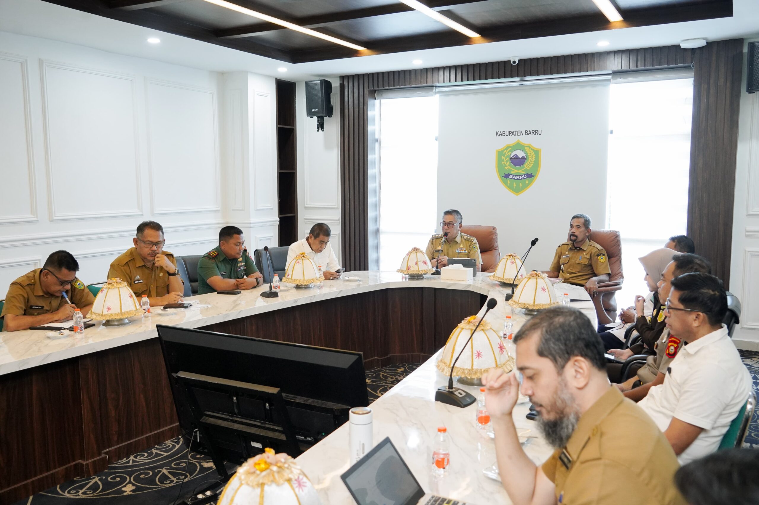Rapat tersebut dibuka oleh Penjabat Sekretaris Daerah Kabupaten Barru, Abubakar, S.Sos., M.Si., dan diikuti oleh Wakil Bupati Barru, Ketua DPRD Kabupaten Barru, Dandim 1405/Parepare yang diwakili Danramil 1405-05/Mallusetasi, Kapolres Barru yang diwakili Kabag Ops Polres Barru, Kejaksaan Negeri Barru yang diwakili Kasubsi Datun, Ketua Pengadilan Negeri Barru yang diwakili Panitera Pengadilan, Asisten Administrasi Pemeritnahan dan Kesra Setda Barru, Pimpinan OPD terkait, Kepala Bagian Pemerintahan Setda Barru, Kasat Intel Polres Barru, Kasat Reskrim Polres Barru, para Camat, serta panitia pemilihan kepala desa tingkat Kabupaten Barru.