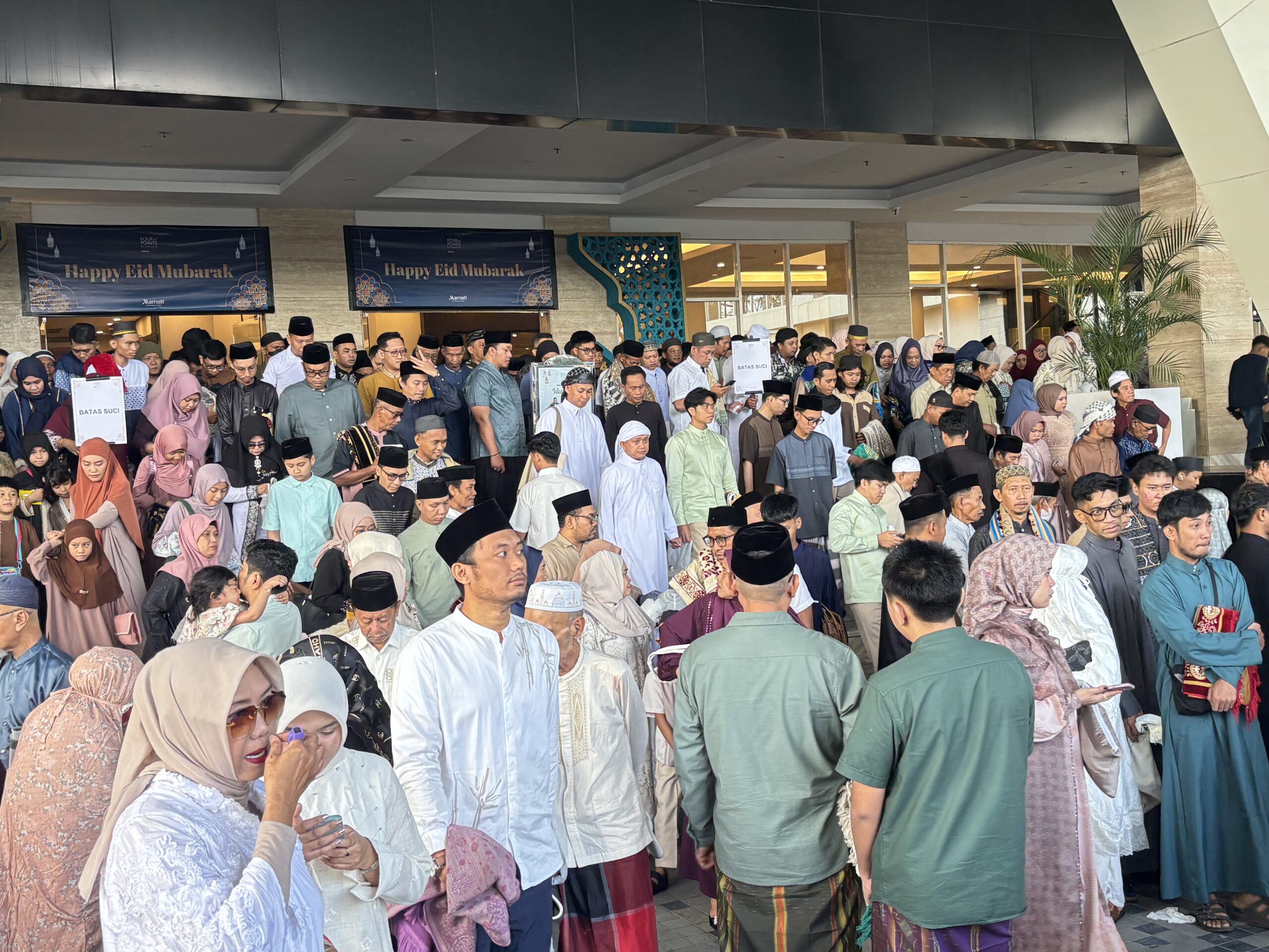 Ikonkata– Managemen Hotel Four Points by Sheraton kembali menjadi tempat ribuan umat Islam di Makassar sebagai lokasi Sholat Idul Fitri 1 Syawal 1447 yang jatuh pada Hari Sabtu, (21/3/2026). Panitia Hari Besar Hari Islam (PBHI) dari Masjid Amamah Bontolanra Makassar dan Baitul Rahmat mengatakan bahwa setiap tahun managemen hotel Four Points dan owner hotel menyediakan lokasi hotelnya sebagai lokasi sholat Idul fitri tanpa membebani pihak panitia. “Seluruh hasil kotak amal diserahkan kepada pengurus masjid Amamah dan Baitul Rahmat untuk kami jadikan sebagai operasional dan pembangunan masjid” ungkap panitia yang menyampaikan saat pengantar Sholat Idul Fitri.
